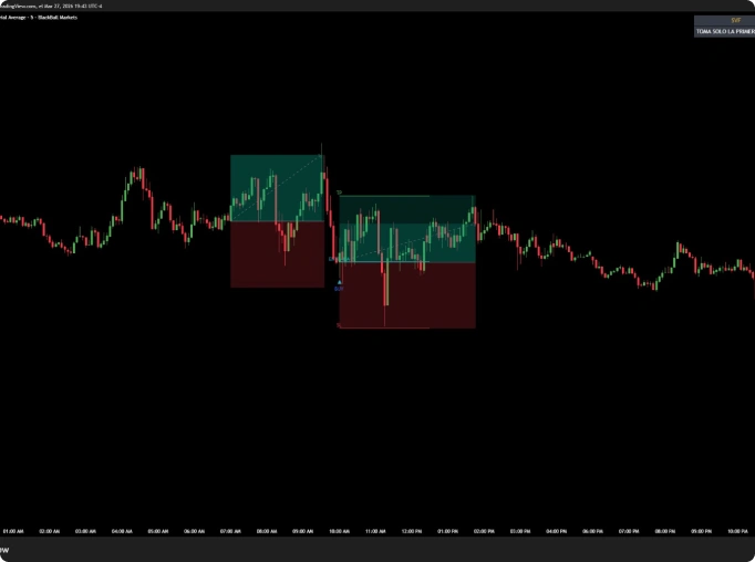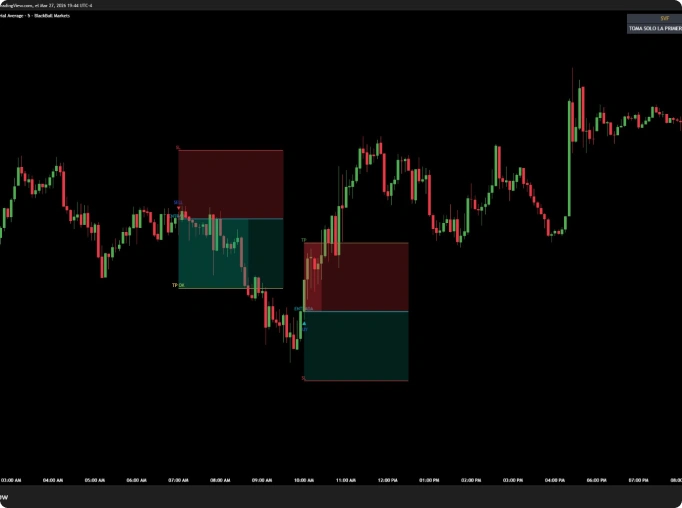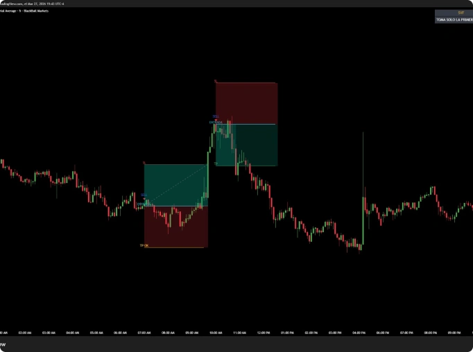 El indicador muestra una estructura clara de la operación, incluyendo niveles de entrada, take profit y stop loss, para que puedas ejecutar con más orden, claridad y menos fricción manual.